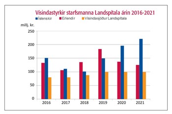 Til að unnt sé að halda uppi þróttmikilli starfsemi háskólasjúkrahúss er fjármagn og hæft starfsfólk frumforsenda. Við höfum enn mikinn og góðan mannauð sem því miður fær ekki nægjanlegt svigrúm til að nýta menntun sína, tengslanet og frumkvæði til rannsókna og nýsköpunar. Aukin fjárfesting í þessum málaflokki er skynsamleg til framtíðar sem allir virðast vera sammála um. Sá stuðningur má ekki bara vera í orði. Skýra framtíðarsýn þarf til sem og sérgreint fjármagn til að uppskeran verði eins og efni standa til. Vonandi tekst að efla vísindastarfið með bættri fjármögnun á árinu 2022 í samræmi við ráðleggingar McKinsey. Þannig hrindum við bæði vísindastefnu spítalans og heilbrigðisstefnu stjórnvalda í framkvæmd og færumst nær þeim löndum sem við berum okkur gjarna saman við. Við megum engan tíma missa.