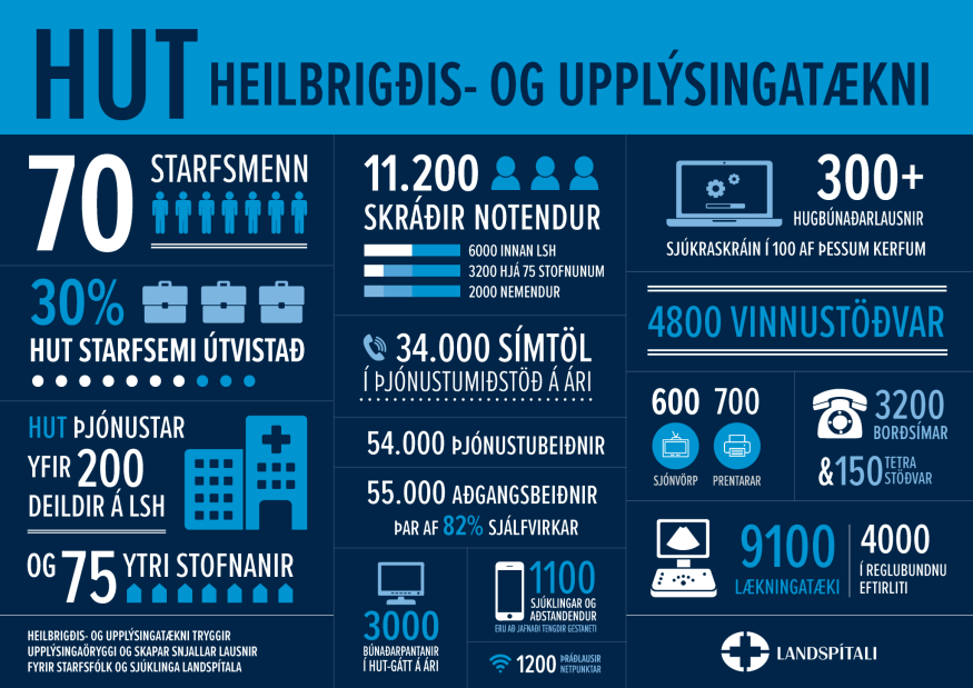 Óumdeilt er að skynsamleg nýting upplýsingatækni sé forsenda árangurs í flestum fyrirtækjum og á sannarlega við um heilbrigðiskerfið. Kostnaður vegna upplýsingatækni og stafrænna umbreytinga er mikill en ávinningurinn er líka gríðarlegur. Algengt er að erlendir spítalar verji 4%-5% af rekstrarkostnaði sínum til upplýsingatæknimála og t.d. ver Karolinska yfir 6%. Landspítalinn ver aðeins 3% til upplýsingatæknimála. Til samanburðar er UT kostnaður íslensku bankanna yfir 10%. Landspítalinn er stærsti vinnustaður landsins með stærsta og flóknasta tölvuumhverfið. Fyrir utan tæplega 5000 vinnustöðvar og yfir 300 tölvukerfi eru yfir 9000 lækningatæki sem eru í raun flókinn tölvubúnaður. Hér er einfalt yfirlit yfir umfang málaflokksins á LSH.