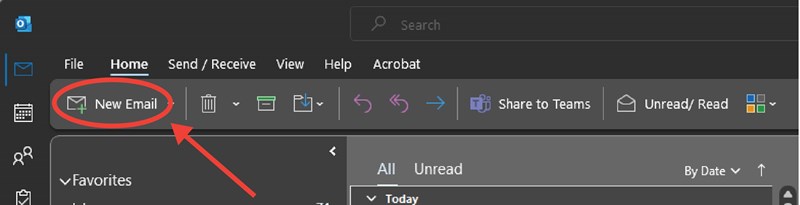 1. Opnið Outlook forritið og búið til nýjan tölvupóst (New Email).