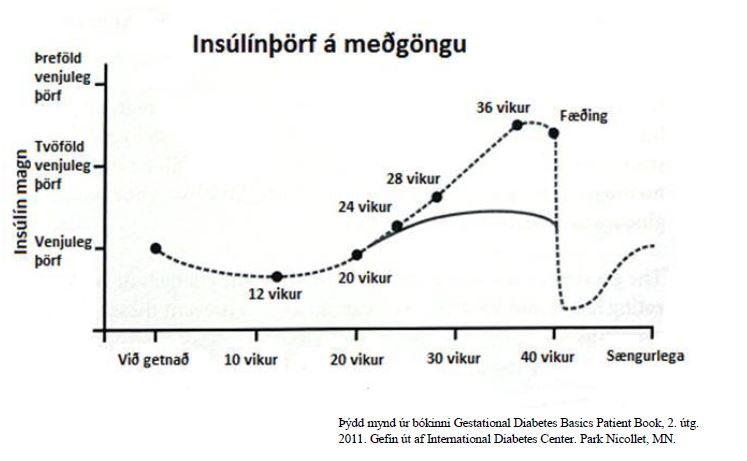 gefa til kynna hversu mikil áhrif máltíðir hafa á blóðsykurinn. Fyrsta meðferð við meðgöngusykursýki er fólgin í góðri næringarinntöku og líkamlegri hreyfingu. Dugi það ekki til getur verið þörf á insúlínmeðferð á meðgöngu.