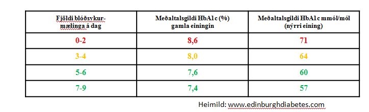 Á sama hátt með því að mæla blóðsykur bara fyrir kvöldmatinn gætirðu dregið þá ályktun að þú þyrftir meira insúlín með hádegismatnum en það myndi líklega leiða til blóðsykurfalls seinni partinn. Þarna gegnir tímasetning lykilhlutverki líka.