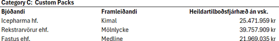 Bjóðandi | Framleiðandi | Vöruheiti | Heildartilboðsverð |