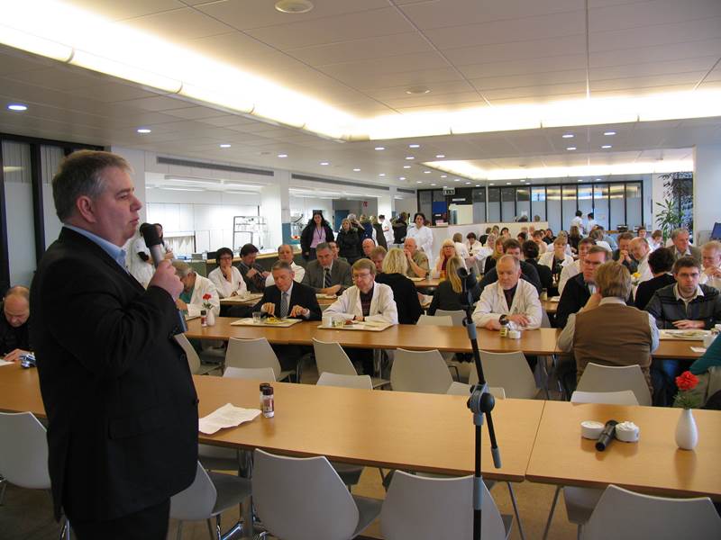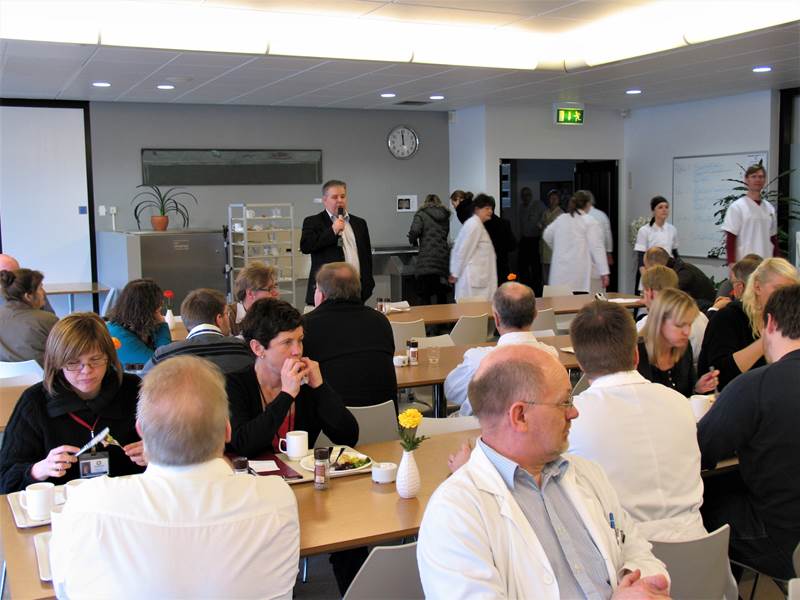 Gunnar Svavarsson, formaður verkefnisstjórnar um nýjan Landspítala, gerir grein fyrir stöðu verkefnisins og svarar fyrirspurnum starfsmanna LSH, ásamt öðrum í verkefnisstjórninni.
