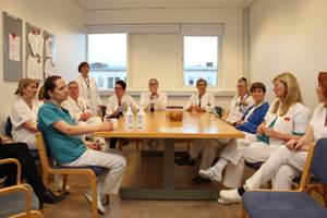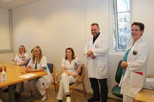 Ólafi Guðlaugssyni sérfræðilækni og Ásdísi Elfarsdóttur deildarstjóra um handhreinsunarverkefnið. |
