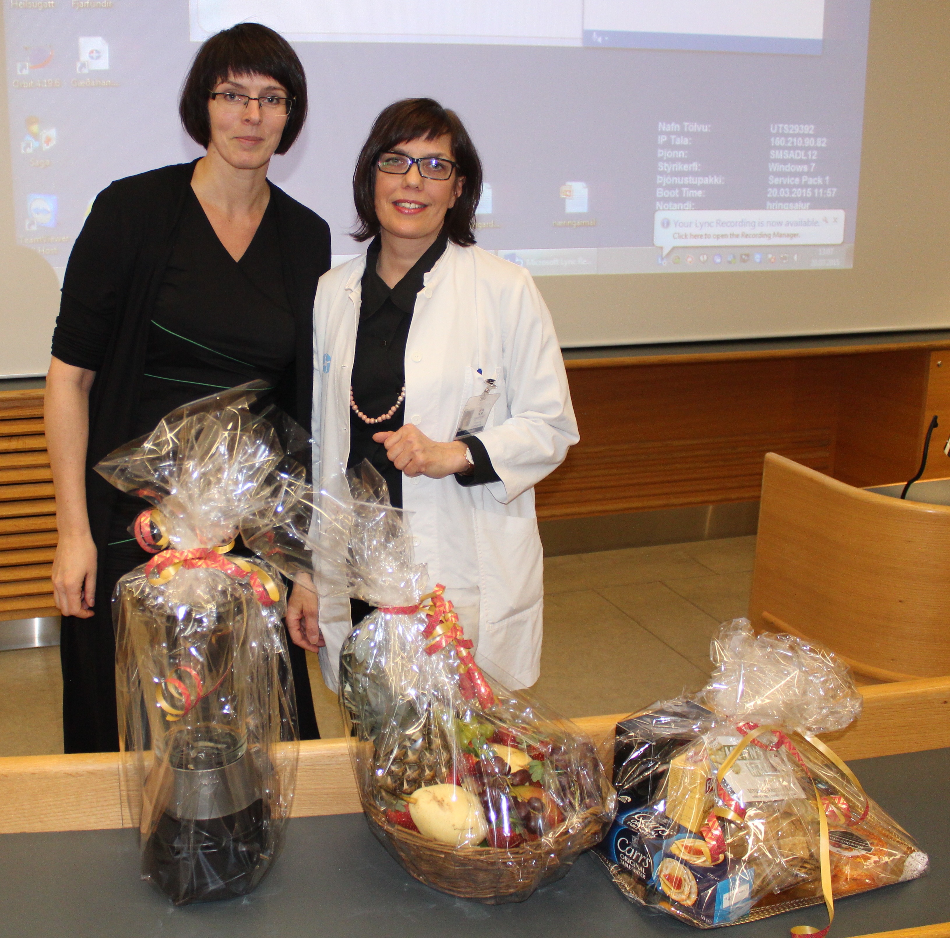 Ingibjörg Gunnarsdóttir, deildarstjóri Næringarstofu afhendir Kristjönu G Guðbergsdóttur, deildarstjóra blóðlækningadeildar Hb-11G viðurkenninguna.