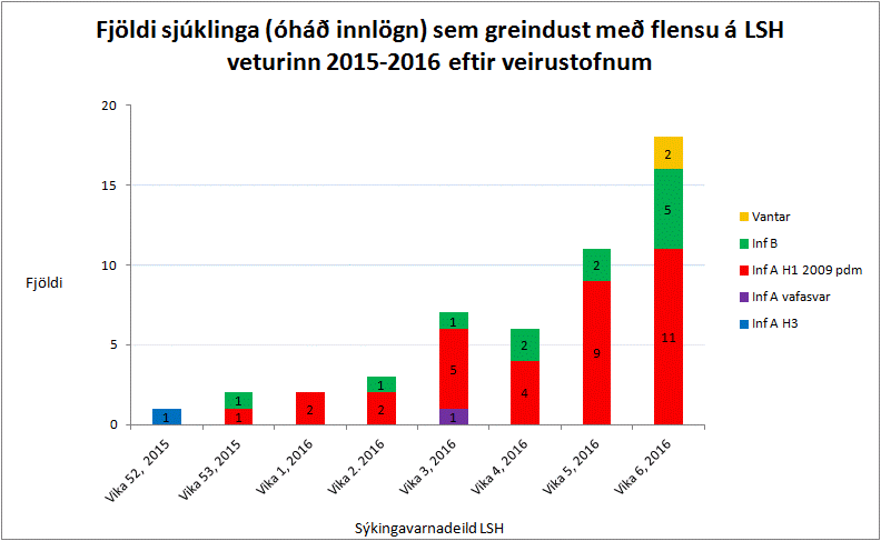 Fjöldi sjúklinga (óháð innlögn) sem greindust með flensu á LSH