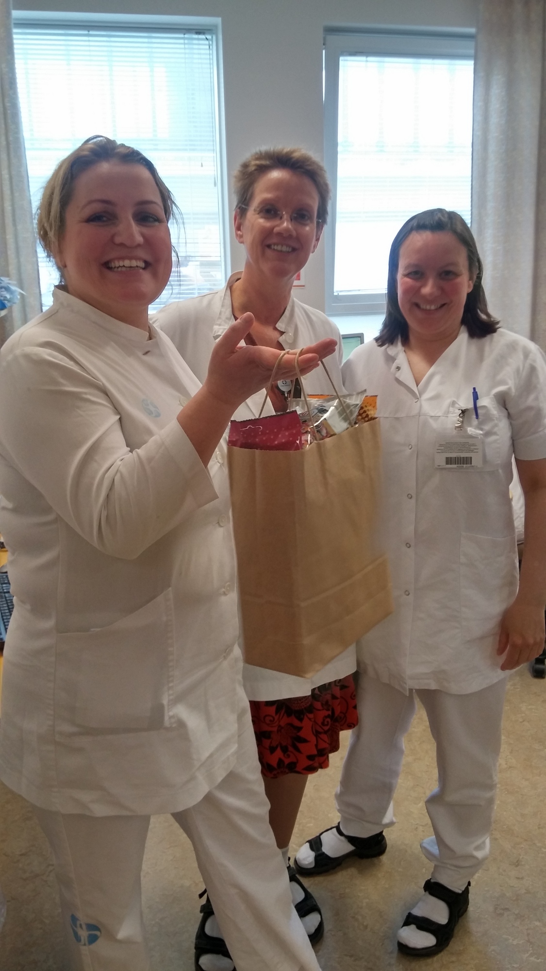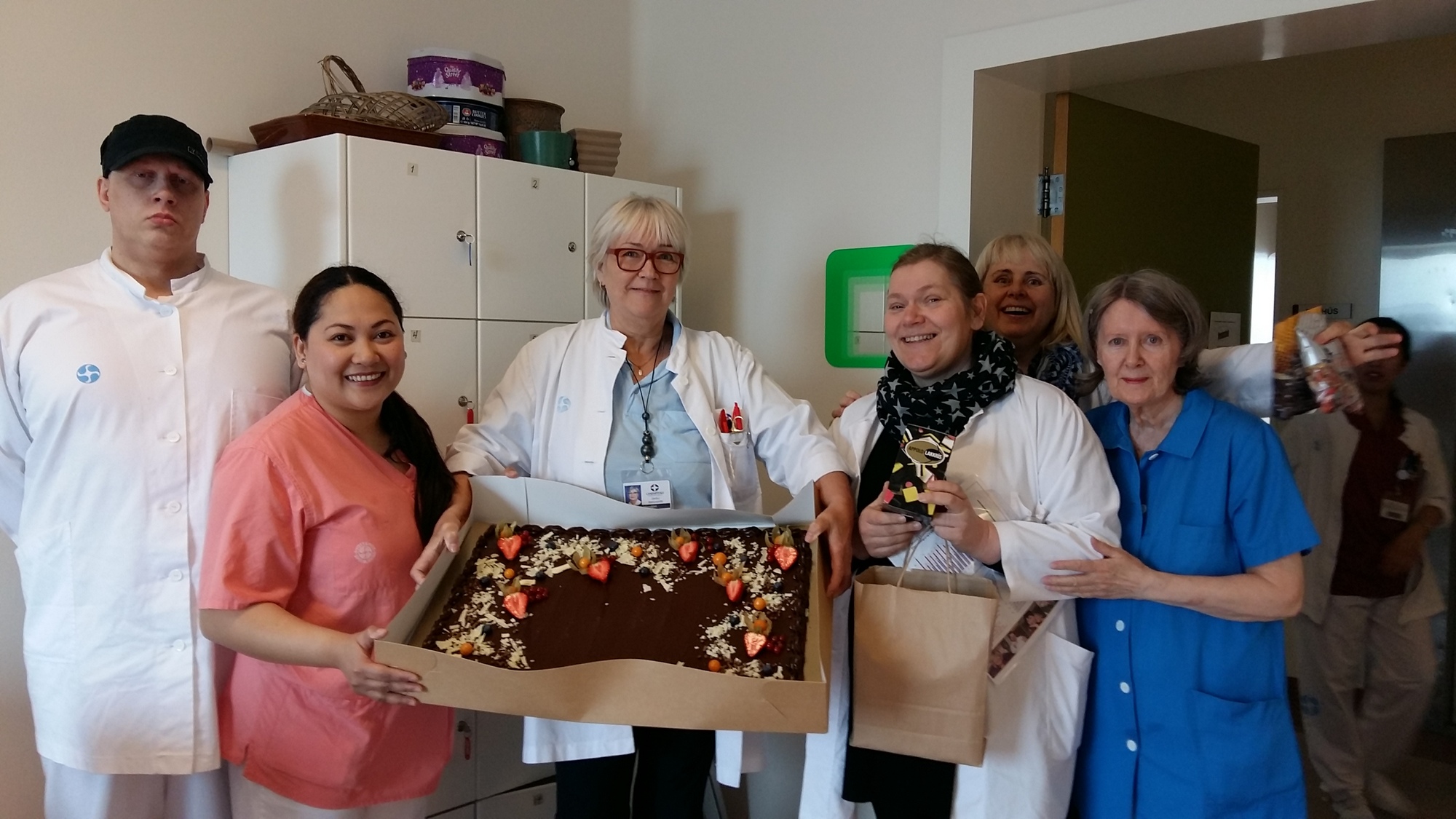 Vökudeild 23D fékk tertu í boði Bakarameistarans fyrir framúrskarandi fylgni við reglur Landspítala um skart á höndum.