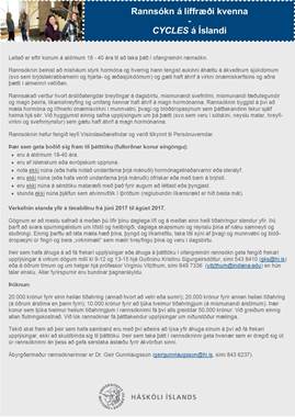 Þær sem geta boðið sig fram til þátttöku (fullorðnar konur eingöngu) eru á aldrinum 18-40 ára. Eru af íslenskum eða evrópskum uppruna. Nota ekki núna (eða hafa notað undanfarna þrjá mánuði) hormónagetnaðarvarnir eða steralyf. Eru ekki núna (eða hafa verið undanfarna þrjá mánuði) ófrískar eða með barn á brjósti. Eru ekki núna á sérstöku mataræði með það fyrir augum að léttast eða þyngjast. Stunda ekki núna þjálfun sem atvinnufólk í íþróttum (reglubundin líkamsrækt er hið besta mál).