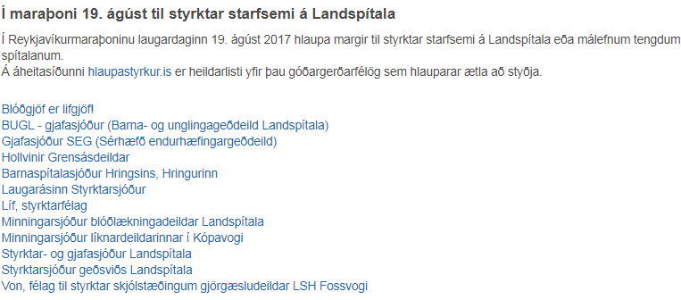 Listi yfir starfsemi á Landspítala sem hlaupið er styrktar í Reykjavíkurmaraþoni 2017 - Smella á myndina til að skoða betur.