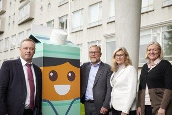 Söfnunarátaki ýtt úr vör: Páll Matthíasson forstjóri Landspítala og Ari Edwald forstjóri Mjólkursamsölunnar, ásamt Ölmu Möller, framkvæmdastjóra aðgerðarsviðs Landspítala og Guðlaugu Rakel Guðjónsdótturframkvæmdastjóra flæðisviðs Landspítala.