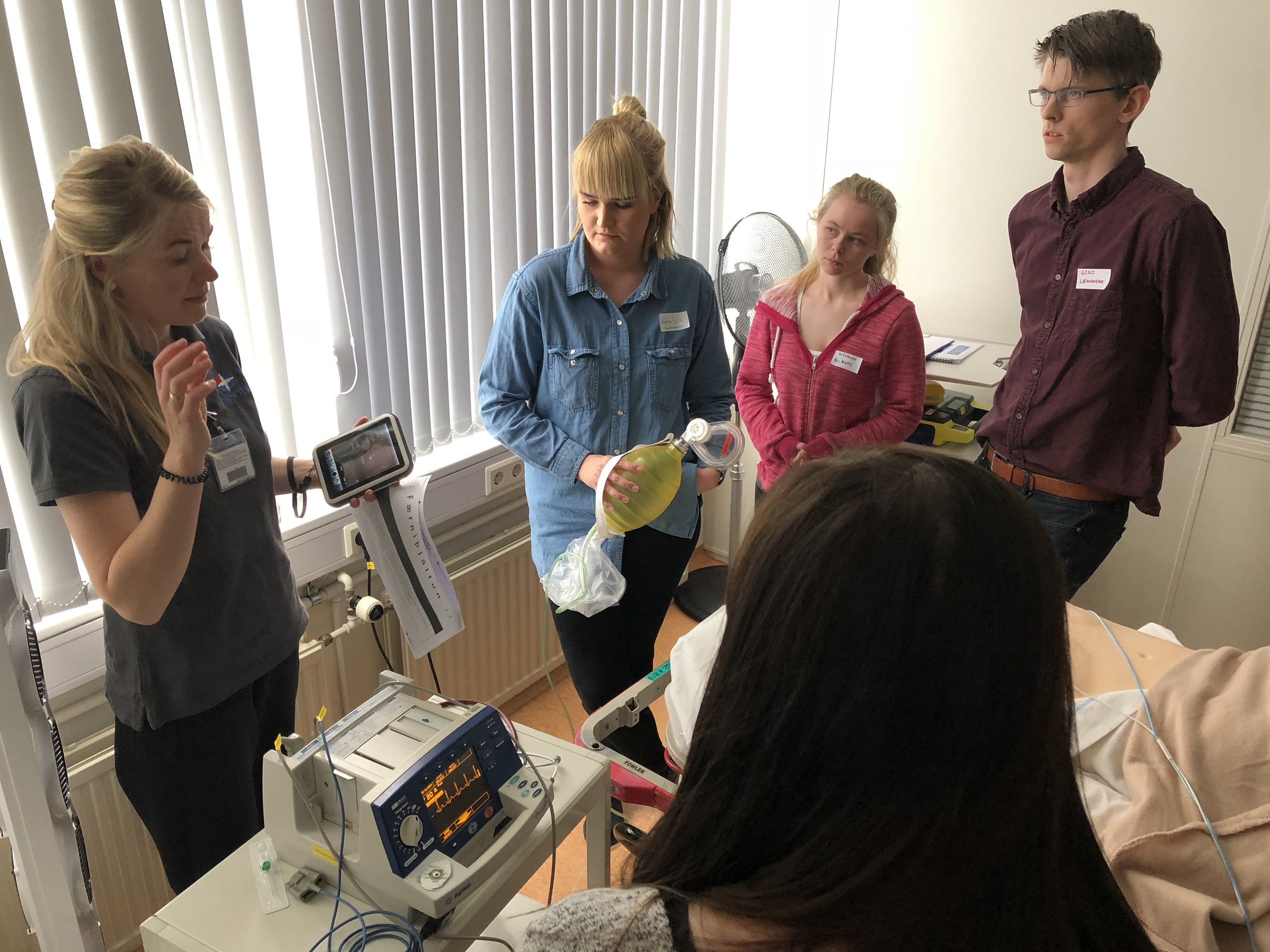 Menntadeild Landspítala stóð í júní 2018 fyrir sameiginlegu námskeiði fyrir hjúkrunarnema á 3. ári og læknanema á 4. og 5. ári. Á námskeiðið mættu 83 áhugasamir nemar. Á dagskrá var hermi- og færniþjálfun, með það að markmiði að undirbúa nemana sem best undir krefjandi sumarstörf. Á meðfylgjandi myndum má m.a. sjá Berglindi Chu, Katrínu Blöndal og Valdísi Önnu Garðarsdóttur við kennslu