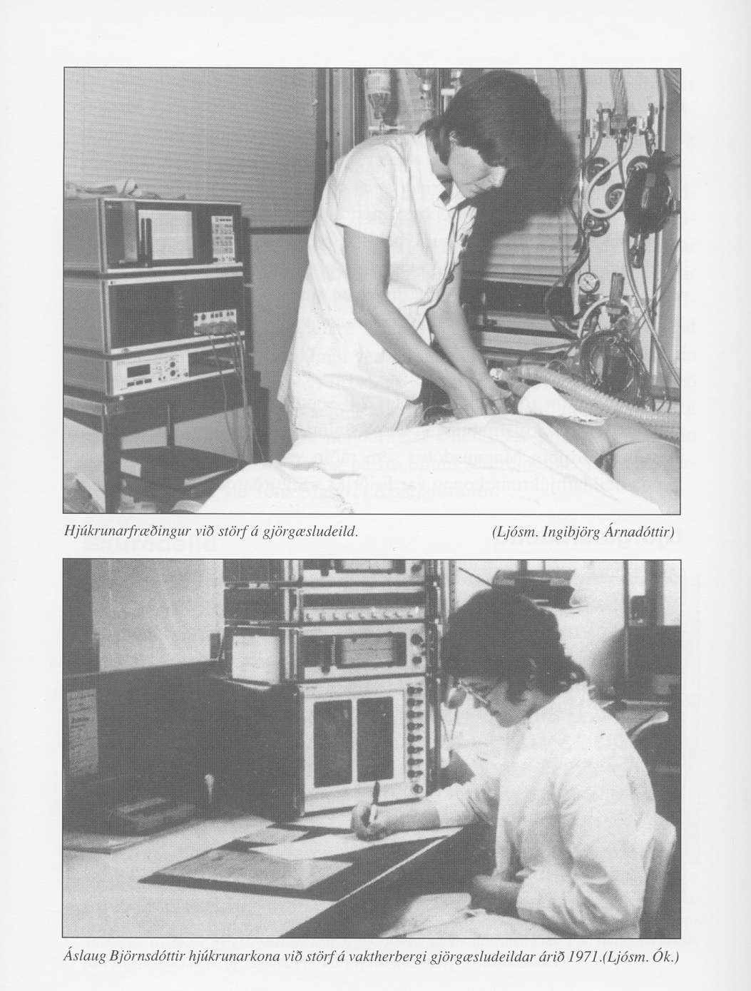 Myndirnar hér fyrir neðan eru úr bókinni „Sjúkrahús verður til“ og teknar um það leyti sem starfsemin hófst. Höfundur: Sigurlín M. Gunnarsdóttir.