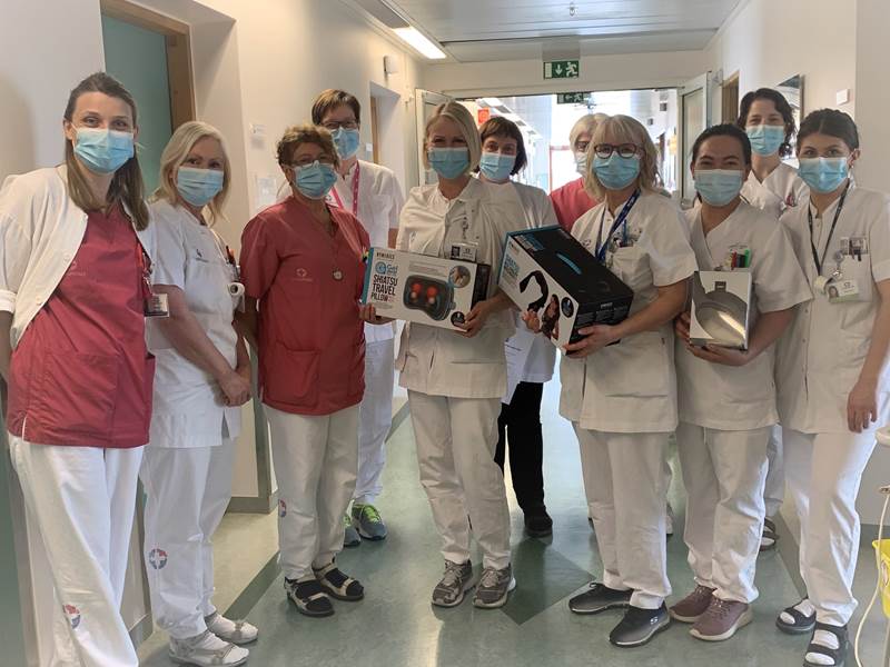 Starfsmannafélag Seðlabanka færði deildum á Landspítala Fossvogi höfðinglega gjöf með þakklæti fyrir seiglu og dugnað í Covid-faraldrinum. Gjafirnar voru afhentar 26. mars 2021.