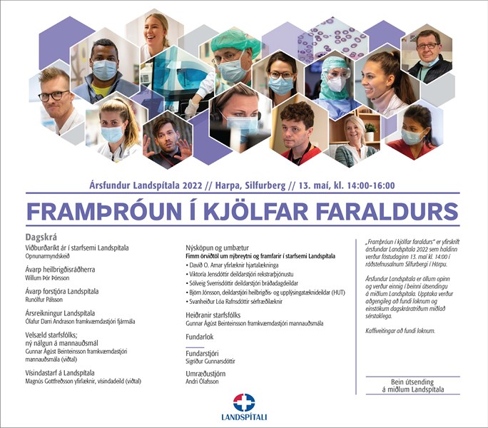 Ársfundur Landspítala 2022 verður í Silfurbergi í Hörpu föstudaginn 13. maí, kl. 14:00 til 16:00.