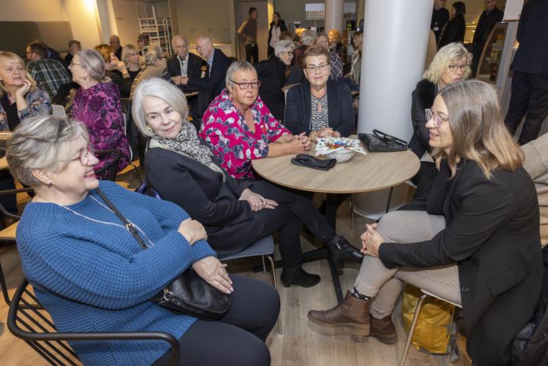Móttakan, sem haldin var í matsal skrifstofu Landspítala við Skaftahlíð, var virkilega hátíðleg stund þar sem bornar voru fram veitingar, fólk spjallaði um liðna tíð og lífið framundan og Guðrún Árný söngkona skemmti að sínum hætti með ljúfum tónum.