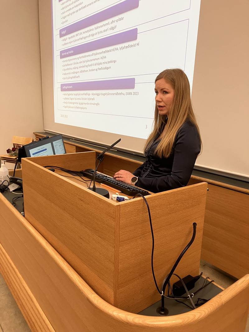 Helga Ýr Erlingsdóttir hjúkrunarfræðingur. Vinnur á hjartadeild 14EG og göngudeild hjartsláttartruflana og hefur sérhæft sig í hjúkrun sjúklinga með gáttatif.