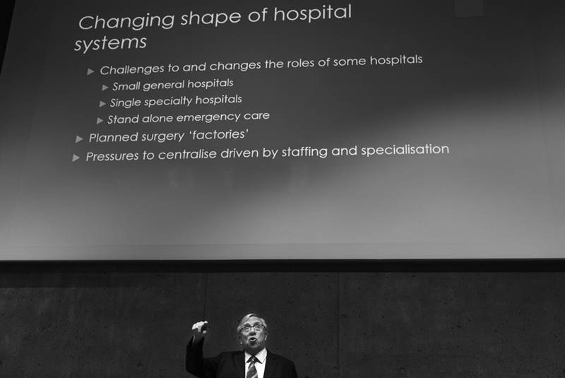 Lykilfyrirlesari á málþinginu var Nigel Edwards, ráðgjafi hjá Alþjóðaheilbrigðismálastofnuninni og fráfarandi framkvæmdastjóri The Nuffield Trust, breskrar hugveitu á sviði heilbrigðisþjónustu. Edwards hefur áratuga reynslu af stjórnunarstörfum, rannsóknum og stefnumótun innan heilbrigðisþjónustu og ríka þekkingu á heilbrigðiskerfum ólíkra landa. Sigríður Gunnarsdóttir, prófessor við hjúkrunarfræði- og ljósmóðurdeild Háskóla Íslands og fyrrverandi framkvæmdastjóri hjúkrunar á Landspítala, og Davíð O. Arnar, yfirlæknir hjartalækninga á Landspítala og prófessor við læknadeild Háskóla Íslands, fluttu einnig erindi og Runólfur Pálsson forstjóri Landspítala var með opnunarorð og samantekt í lokin. Þátttakendur í pallborðsumræðum voru, auk Runólfs, Ásgeir Margeirsson, formaður stýrihóps Nýs Landspítala ohf. (NLSH), Bjarkey Olsen Gunnarsdóttir, formaður velferðarnefndar Alþingis, og María Heimisdóttir, læknir og fyrrverandi forstjóri Sjúkratrygginga Íslands.