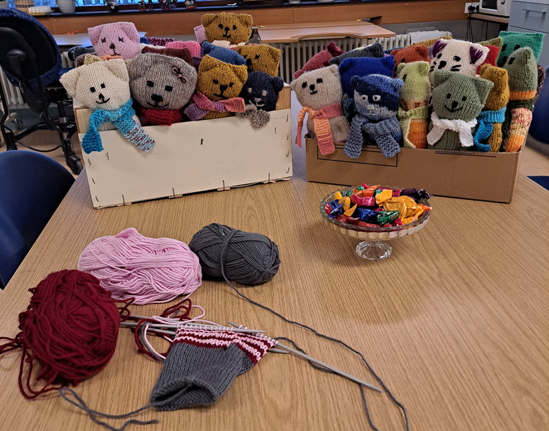 Í sumar ákvað starfsfólk og skjólstæðingar á Grensási að taka þátt í verkefninu "Sjúkrabílabangsar". Ákveðið var strax í byrjun að setja markið á að afhenda 50 bangsa fyrir áramót, þar sem nú er 50 ára afmælisár Grensáss. Unnið var að verkefninu í iðjuþjálfun og voru margir sem komu að því, gripu í prjóna, tróðu í og saumuðu. Útkoman eru einstaklega skemmtilegir og fjölbreyttir 50 bangsar.