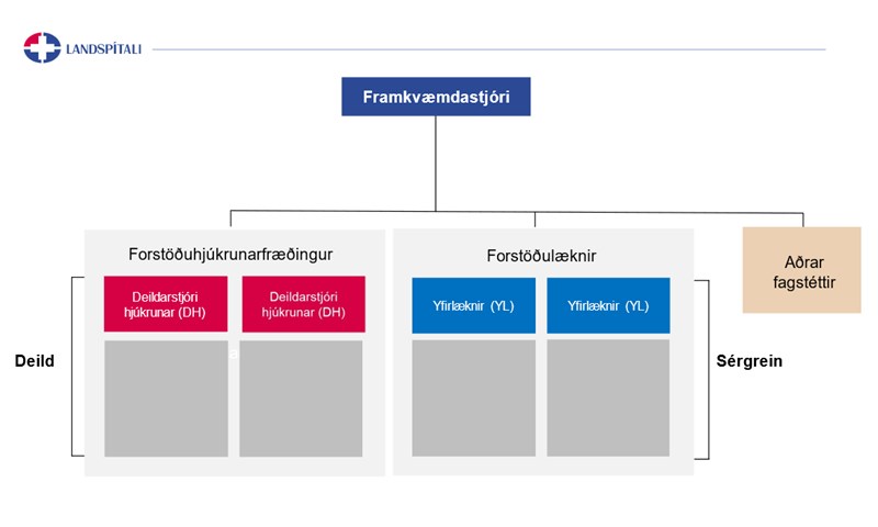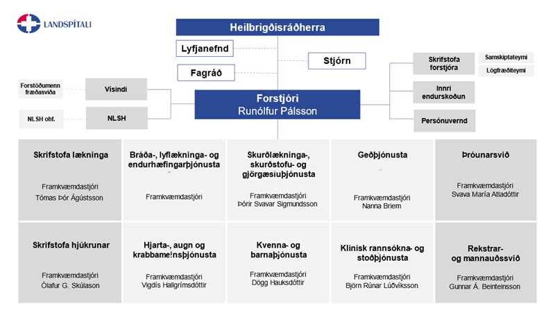 Breytingarnar munu taka gildi 1. apríl nk. og nýtt skipurit spítalans verður með eftirfarandi hætti: