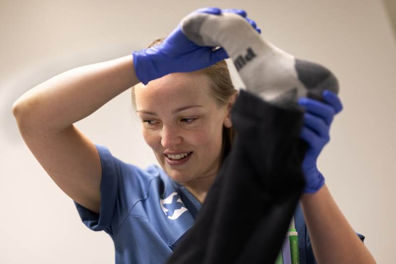 Ljósmyndari Landspítala festi nokkra sjúkraþjálfara spítalans á filmu í síðustu viku og má sjá myndir hér að neðan og nánari umfjöllun á Facebook síðu spítalans.