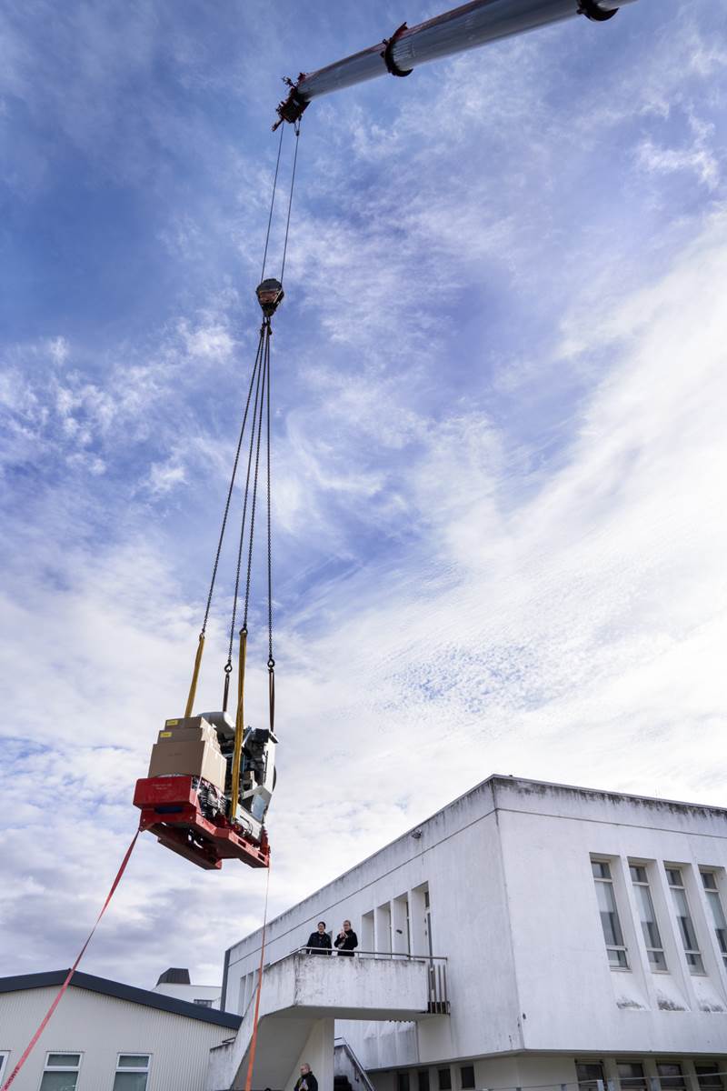 Verkið gekk vel í góðu veðri en um 8 klukkutíma tók að hífa inn þá 22 kassa sem línuhraðallinn kom í. Stærsta stykkið var 5 tonn og tækjabúnaðurinn allur samtals 15 tonn. Nota þurfti sérstakan inngang og viðhafa ýmsar tilfæringar til að koma línuhraðlinum á sinn stað. Valið var að koma línuhraðlinum fyrir um helgi til að valda sem minnstu raski fyrir sjúklinga og starfsmenn.