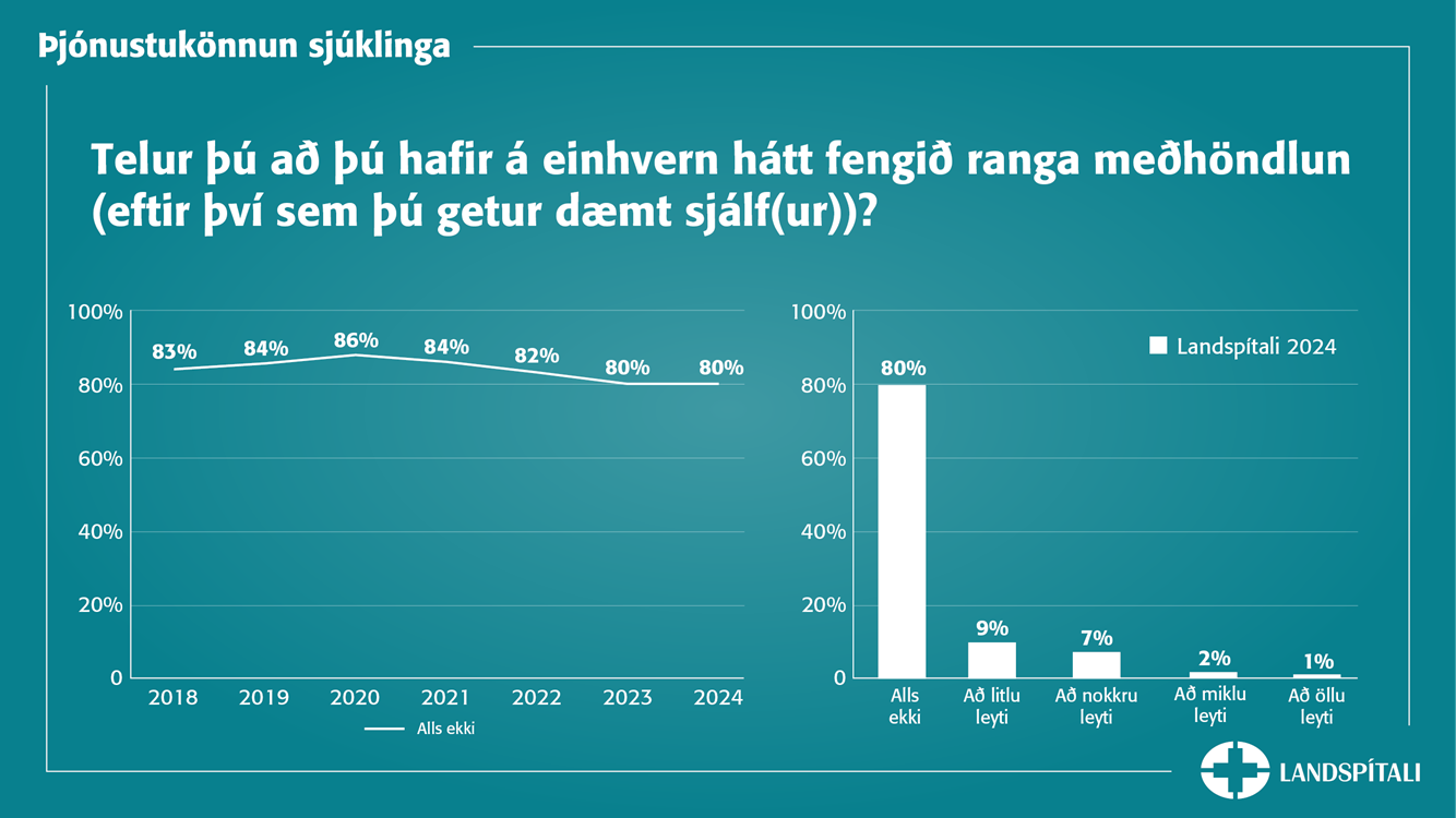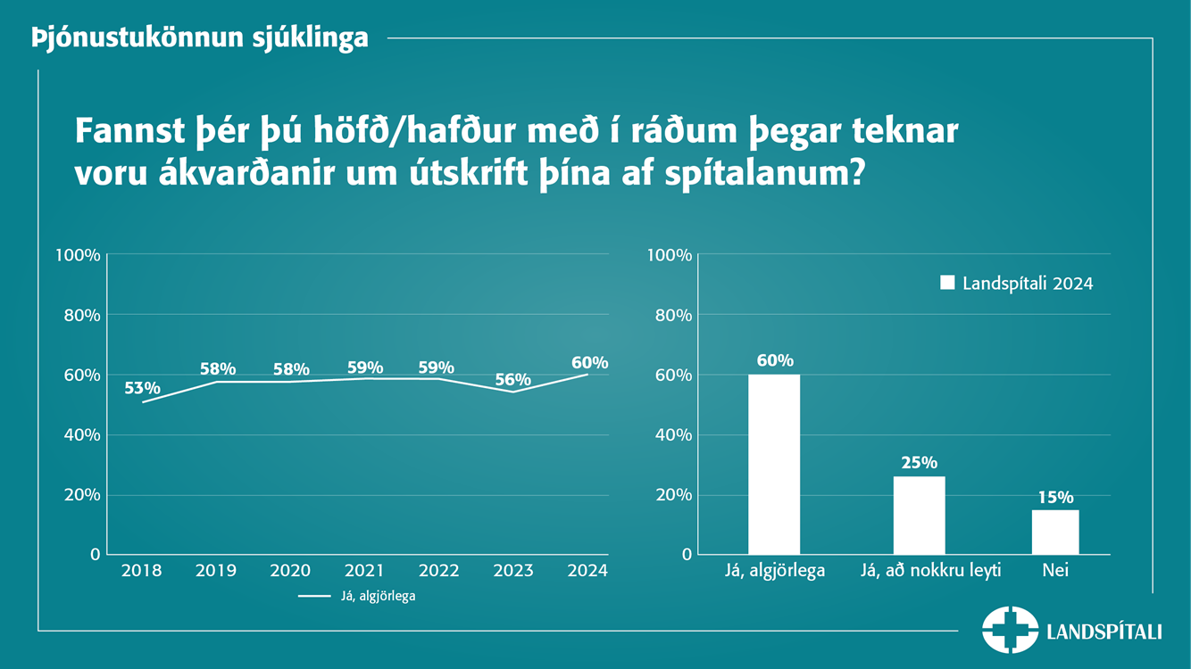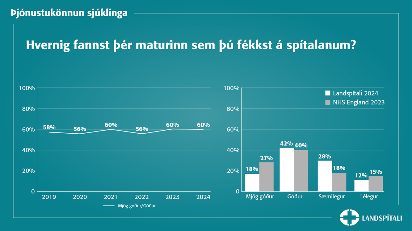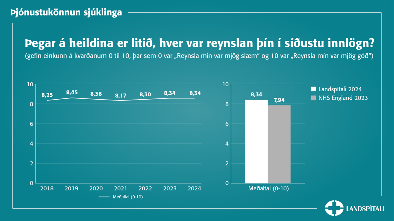 Hér fyrir neðan sjá nánari niðurstöður úr þjónustukönnun Landspítala en hún er lögð árlega fyrir lagskipt slembiúrtak sjúklinga sem dvöldu á legudeildum.