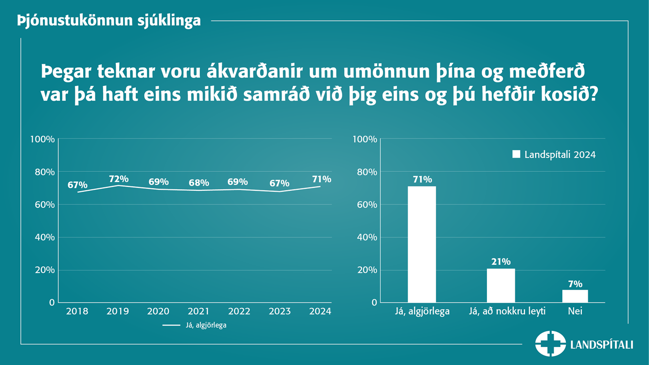 Umhyggja er eitt af gildum Landspítala og sl. tvö ár hefur verið spurt um umhyggju í þjónustukönnun Landspítala.