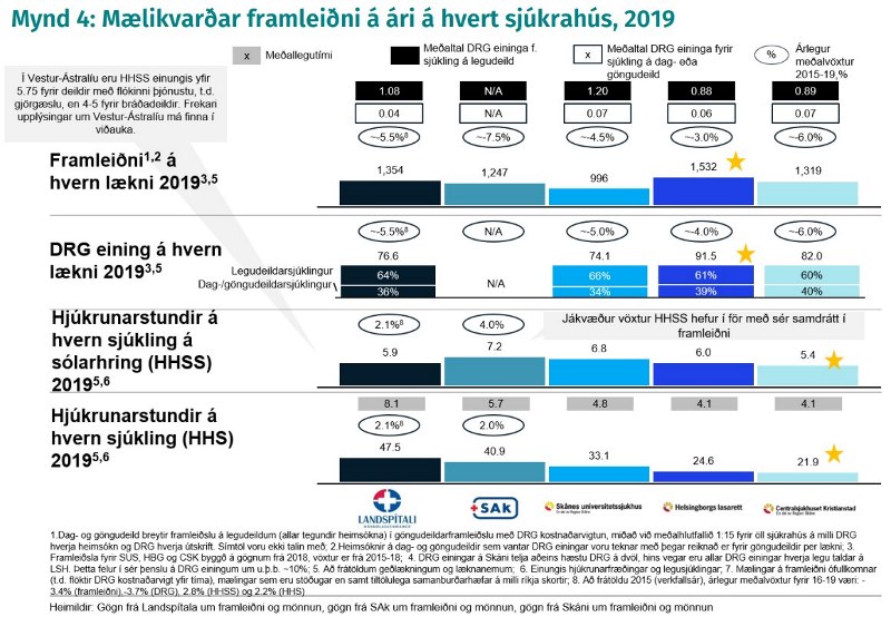 Landspítali stendur framar viðmiðunarsjúkrahúsum erlendis í framleiðni á skurðstofum og nýtingu þeirra. Þar munar raunar gríðarmiklu eins og sést skýrt á mynd 5 úr skýrslu McKinsey.